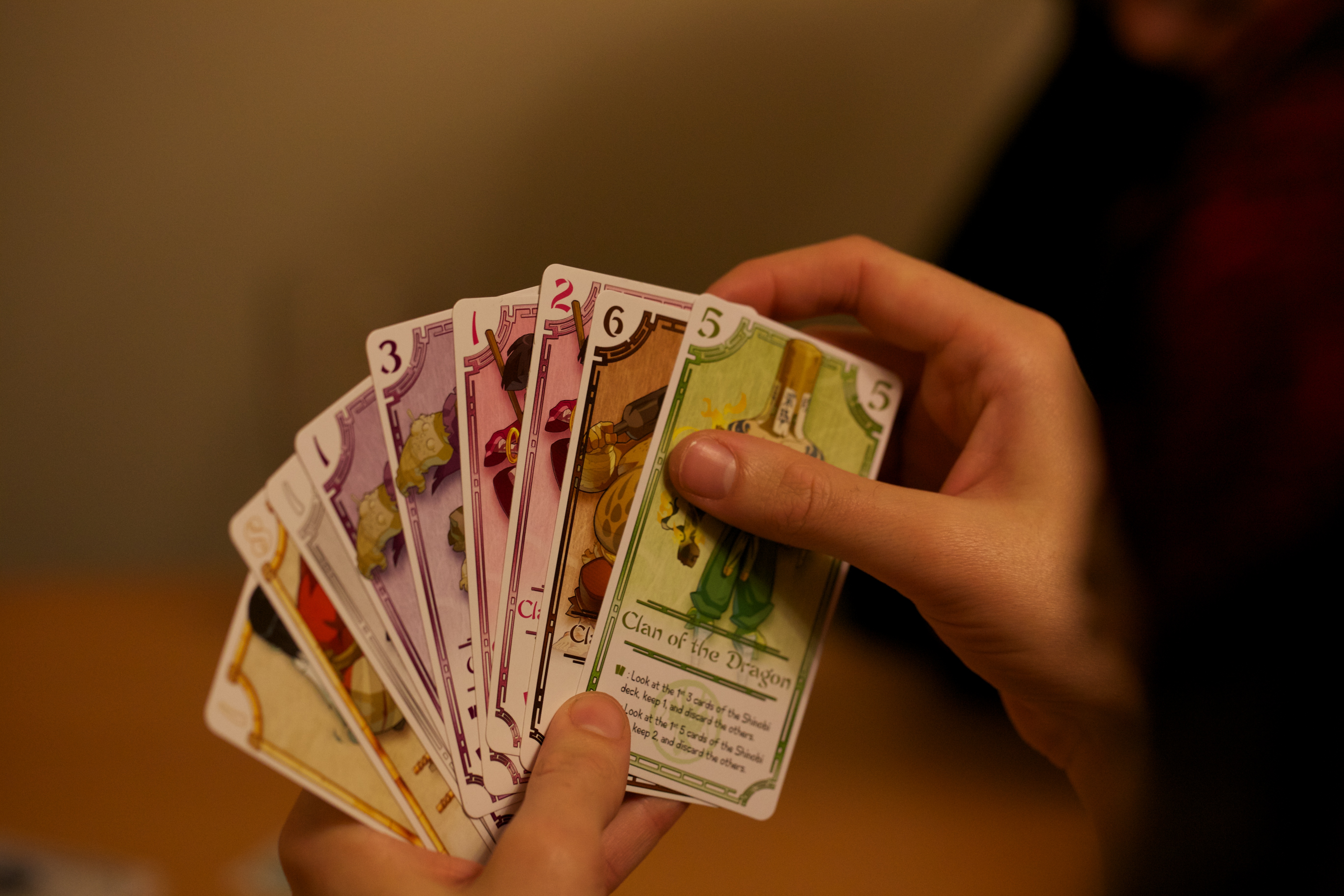 It’s hardly the most complex or rich game in the world, but it is unashamedly fun. It’s the feudal Japanese card game equivalent of a pew-pew video game. Dicks fly everywhere and the art is about as fantastic as you’d expect from the guy who also did Seasons and that most scenic of games, Tokaido. It has a cartoonish feel that is both beautifully detailed and very bold and clean. This perfectly reflects the style of the game – simple, fun, yet with captivating little details. For example the wild cards which can be used to simply make up numbers in a clan are called Ronin – a feudal Japanese term for a samurai without a master or lord. Similarly, the powerful single cards which can be played as one-off additions to a clan are called Yokai – spirits or supernatural beings present in Japanese folklore. This is exciting if you’re incredibly nerdy and contributes to the immensely satisfying feeling of a well-balanced, well-designed game that just works. The cards are also taller than you’d expect, which is aesthetically very pleasing. It’s a neat touch.