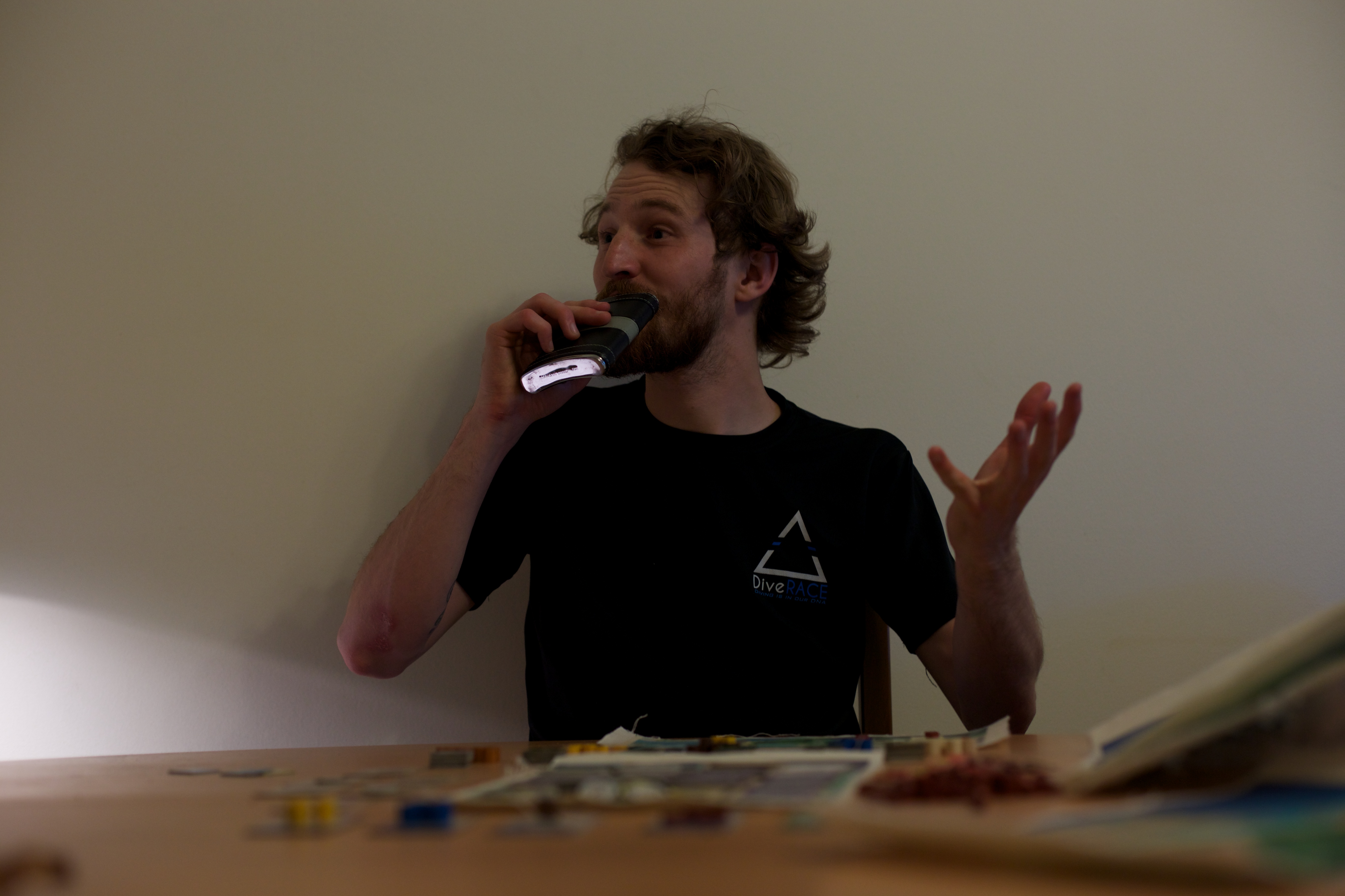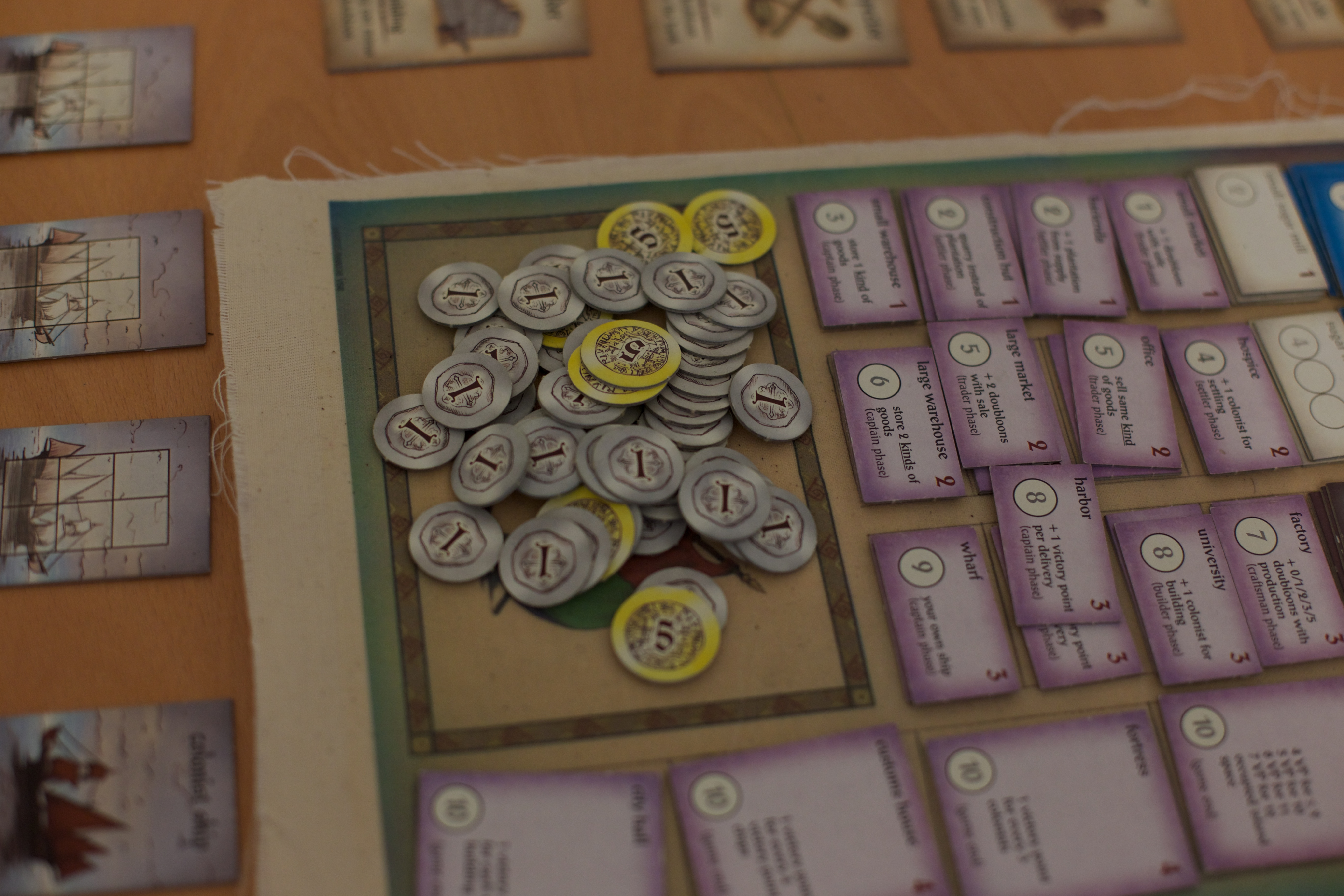 This stage looks and feels a bit like a manic, grabby version of Carcasonne, except that it’s possible to return tiles to the pool if they won’t fit on your ship.