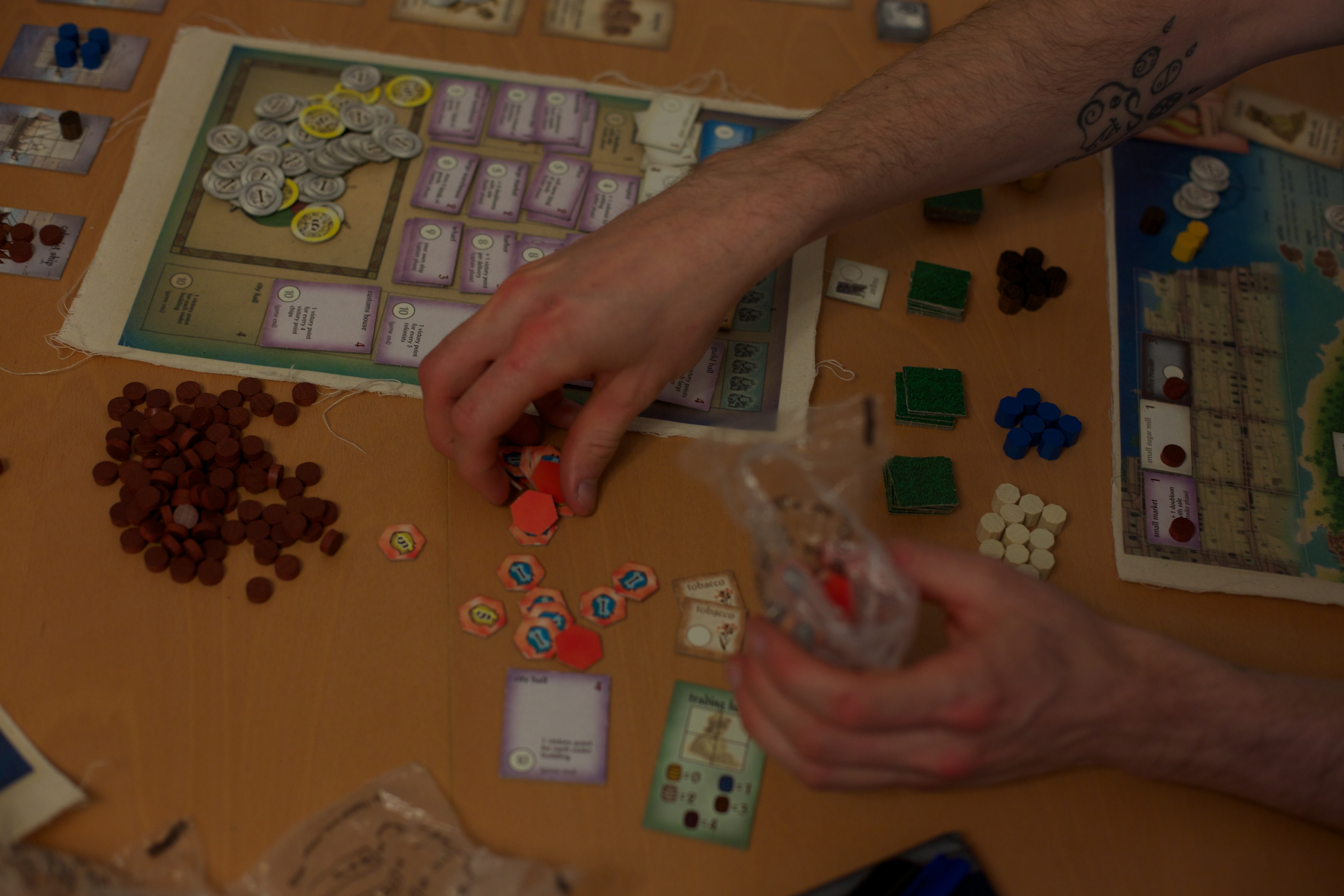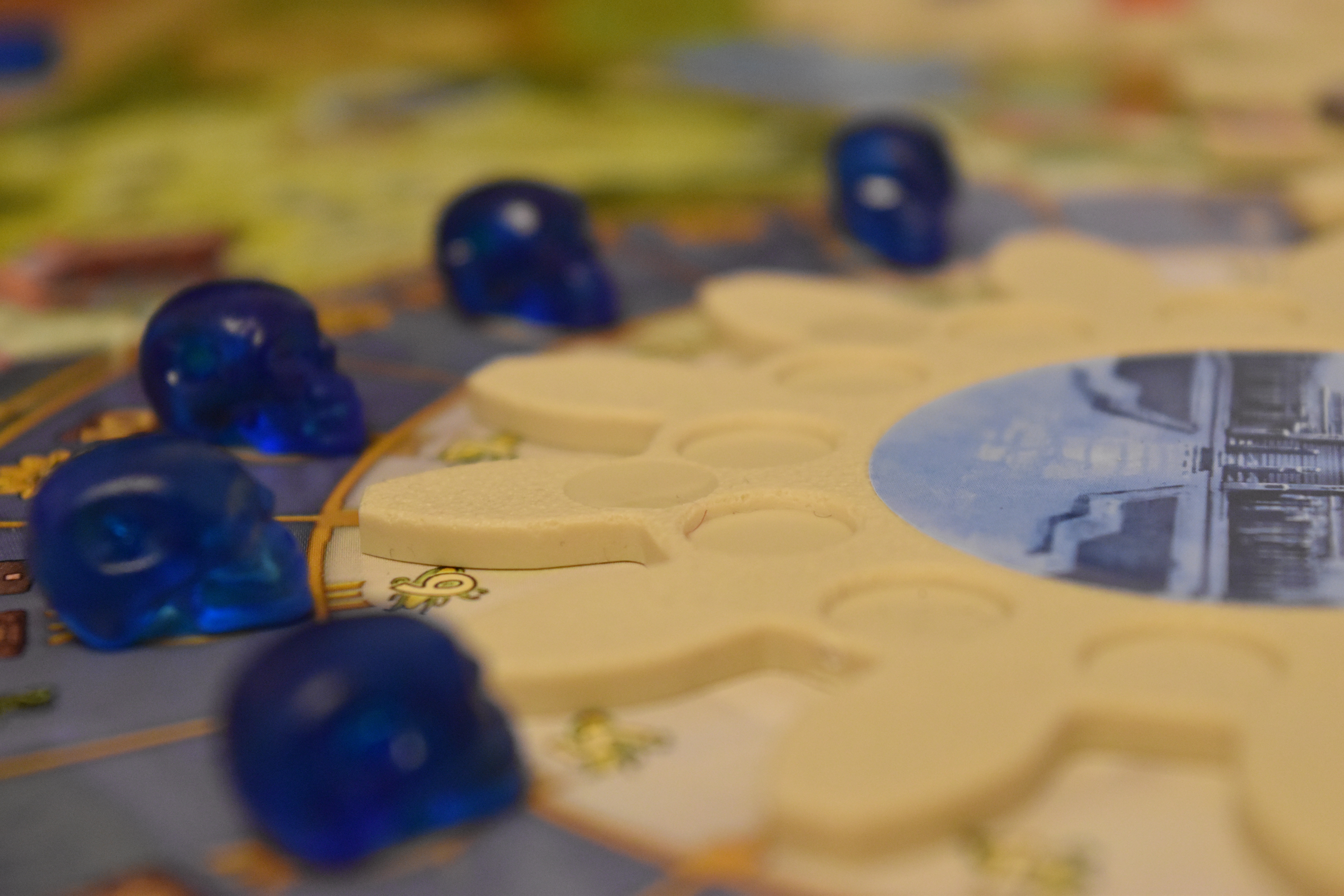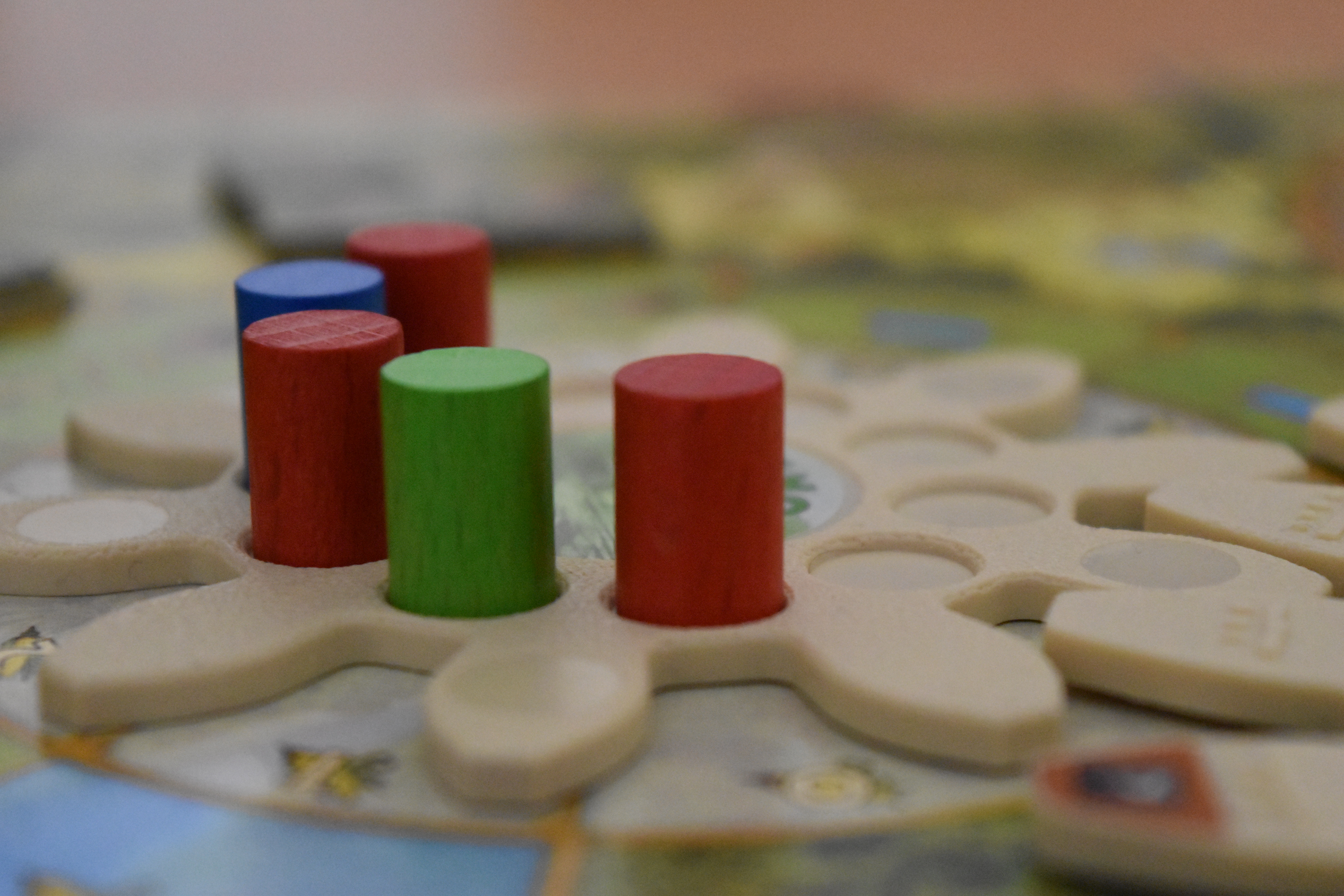 And so, each player picks up and redistributes meeple throughout the game, using their skills to generate victory points. Briony is particularly good at a strategy relying on market traders: it’s always satisfying to generate enough points in a single track to beat everyone else and their diversity tactics. She annoyingly does this with the science track in 7 Wonders and is rarely, if ever, beaten.