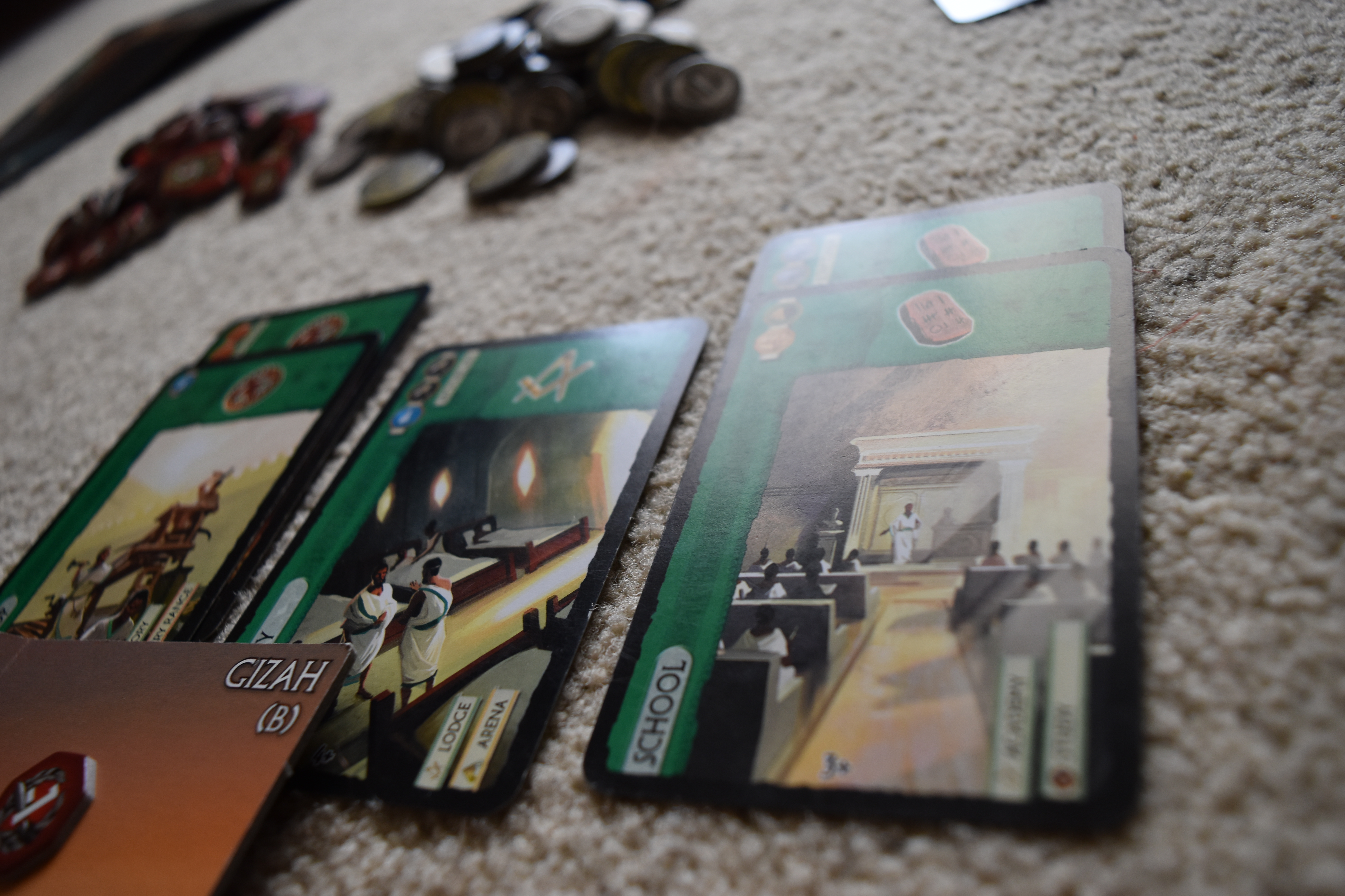 The game is fast in general, which makes it perfect to play several times in one evening or to get new people into gaming. As was the case with Briony, it can make a pretty good gateway board game, as long as you take the time to explain each component and keep the card-choosing phase pretty quick. Bob actually hated (or thought she hated) this game for years, not having Briony’s Civ experience and finding game frustrating and exhausting as a board game noob. Turns out, she just had really dawdly friends who didn’t make the trading rules clear. In addition, make sure to stop and take in the art work on the cards, if that’s your cup of tea. They’re often beautifully painted scenes or buildings and they add a lot to the game design.