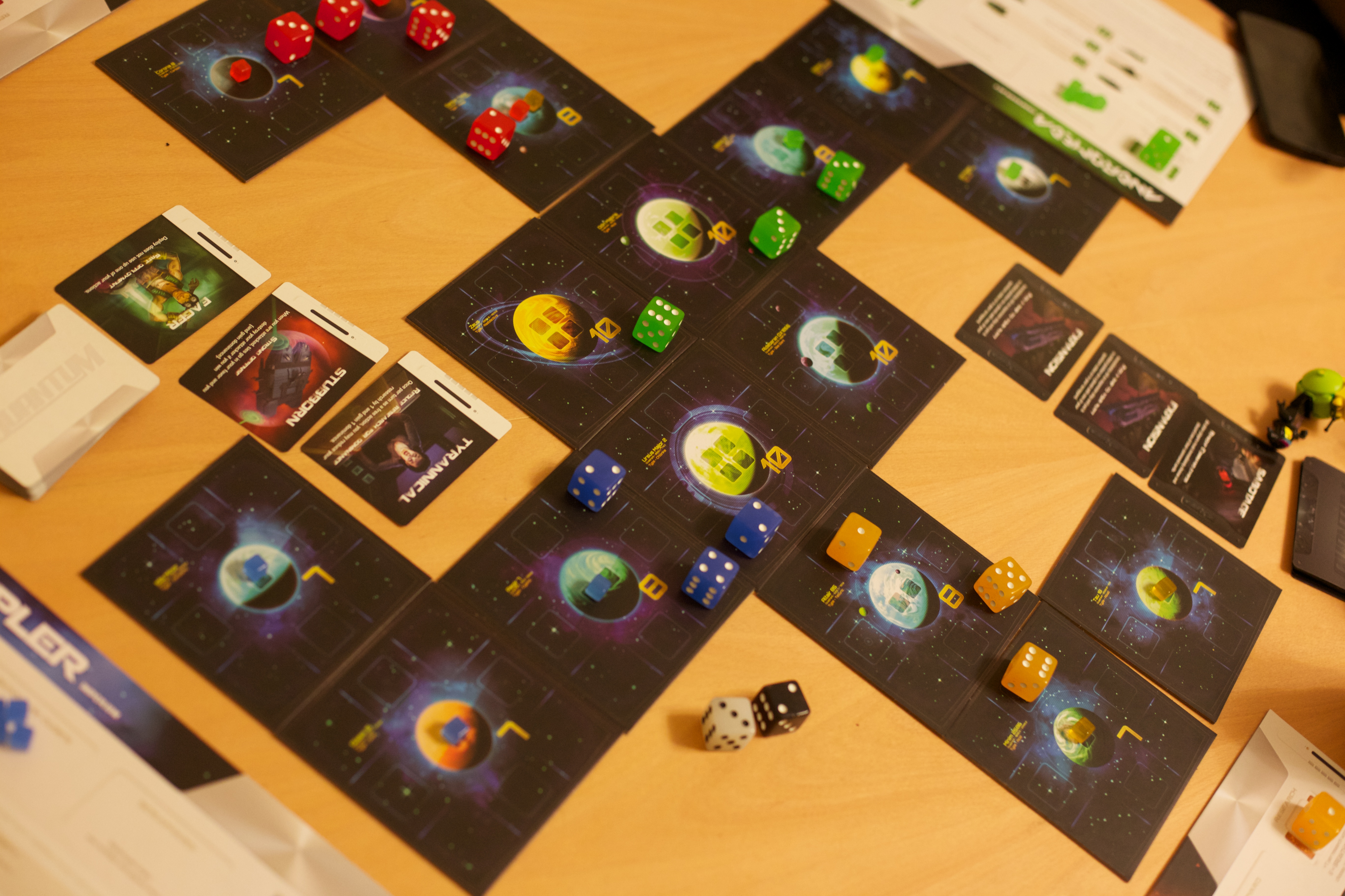 One thing that seemed a little less balanced is the discrepancies between different numbers of players. We left Bob unsupervised once or twice and she had a few solo runs of the game, which she tells us was possibly a little too easy. Obviously we can only explain this by the game being easier with only one player, and nothing at all to do with Briony, Lizzy and the Camera-Man holding her back the rest of the time. It’s also absolutely impossible that she was playing it wrong. She’s a known rules junkie, our Bob, who never takes the ‘eh, that’s probably right?’ approach to little things like numbers of dice or how DOOM tracks work.