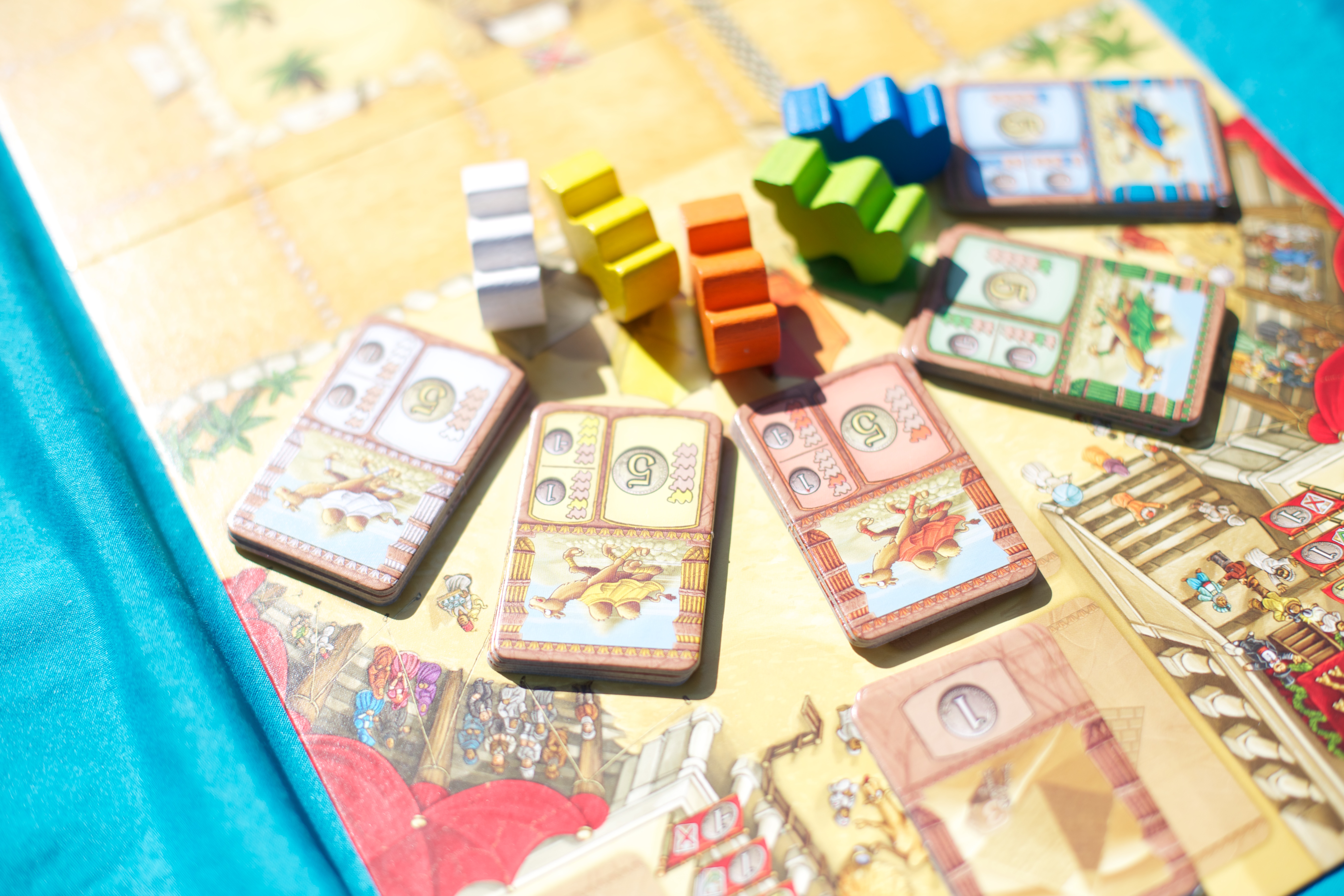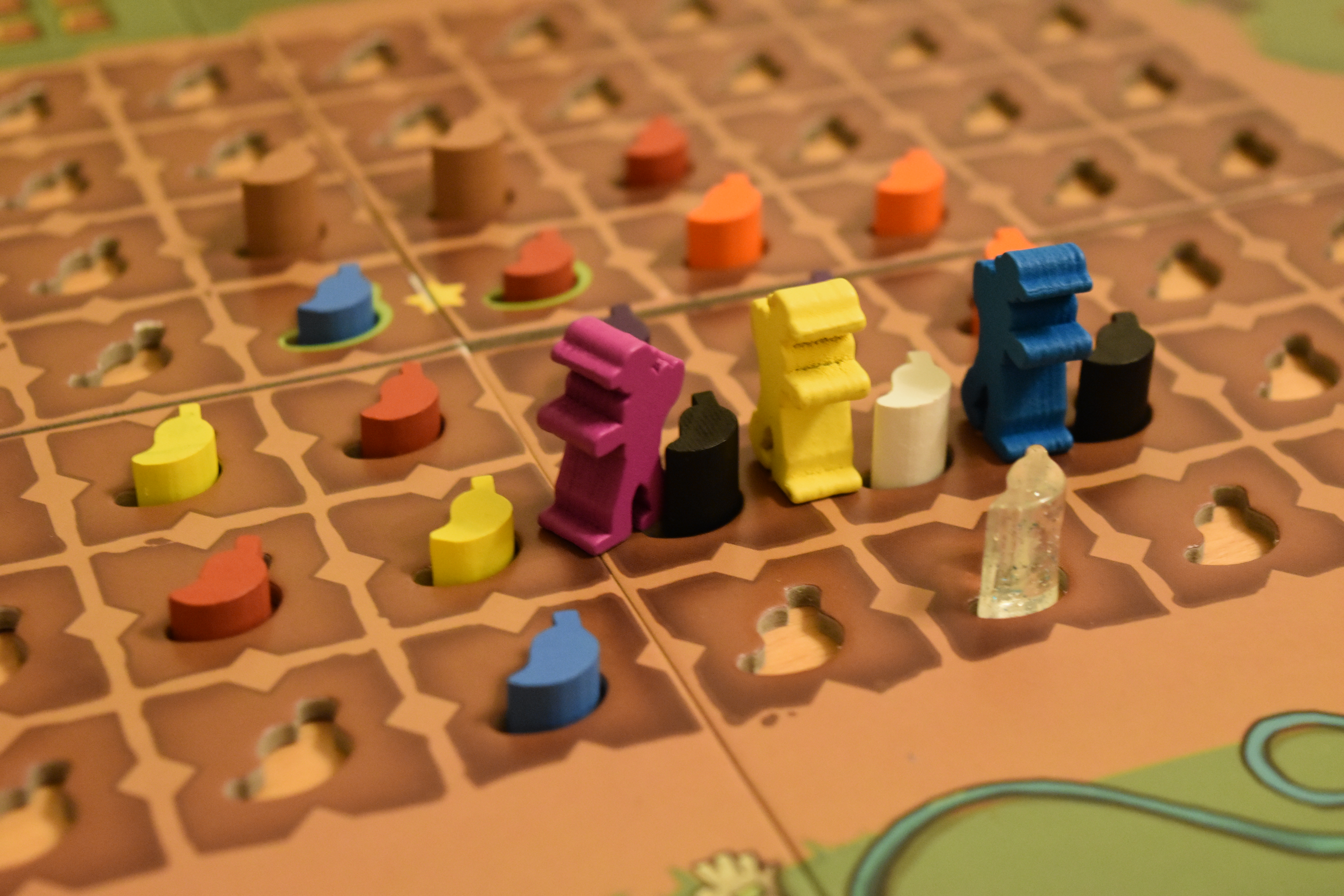 What about the camels, I hear you cry! You’ve been shouting it at us from the moment we stopped mentioning them. Well! If you pick up the very last meeple of ANY colour in a square, thus leaving empty, you are allowed to park a camel of your colour on it (which is worth a certain amount of victory points at the end of the game)*.