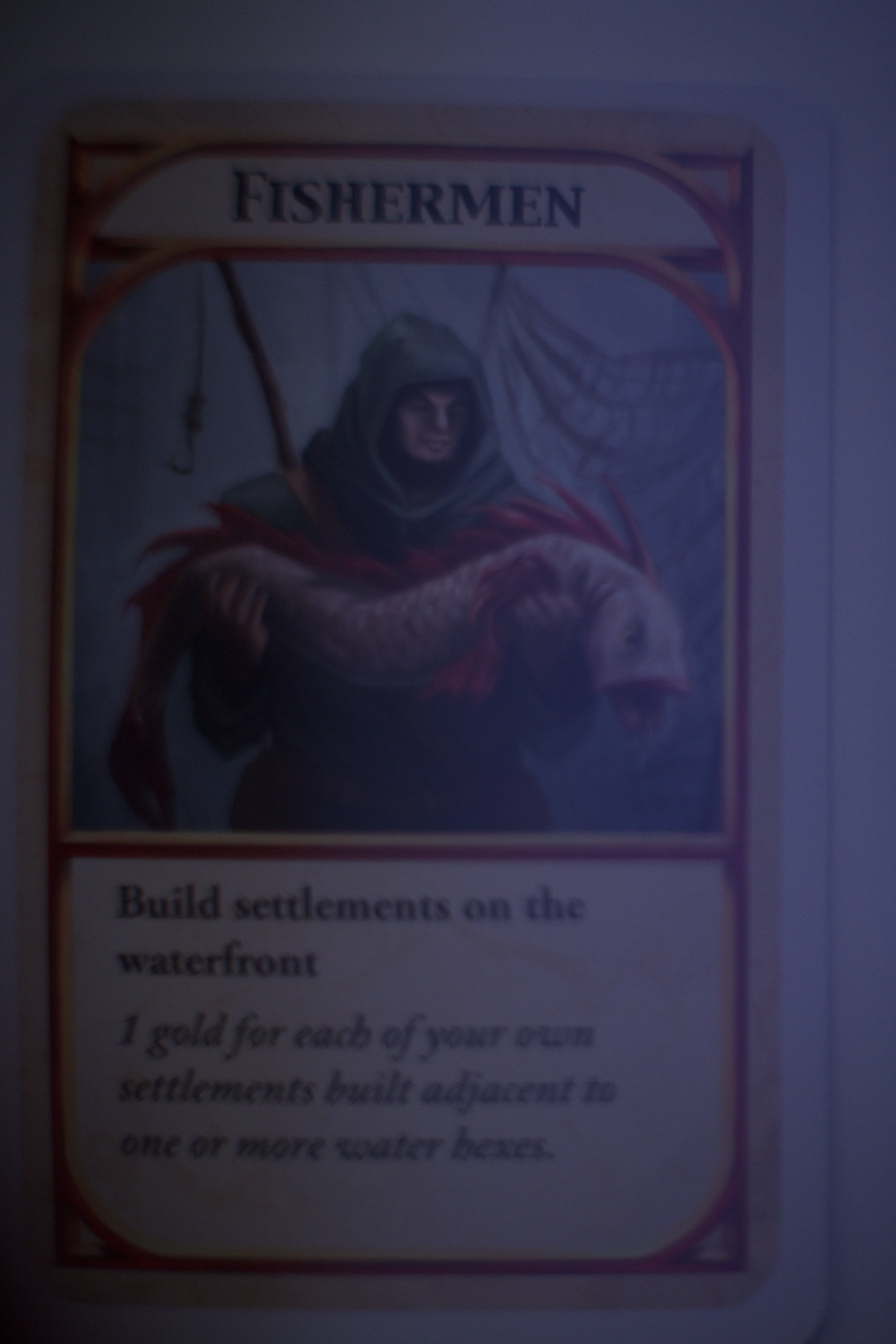 If you’re building a town for miners then you’ll probably want some settlements near the mountains, which is where they tend to get their mining did. So a ‘miners’ card will (quite logically) get you one point per settlement next to a mountain.